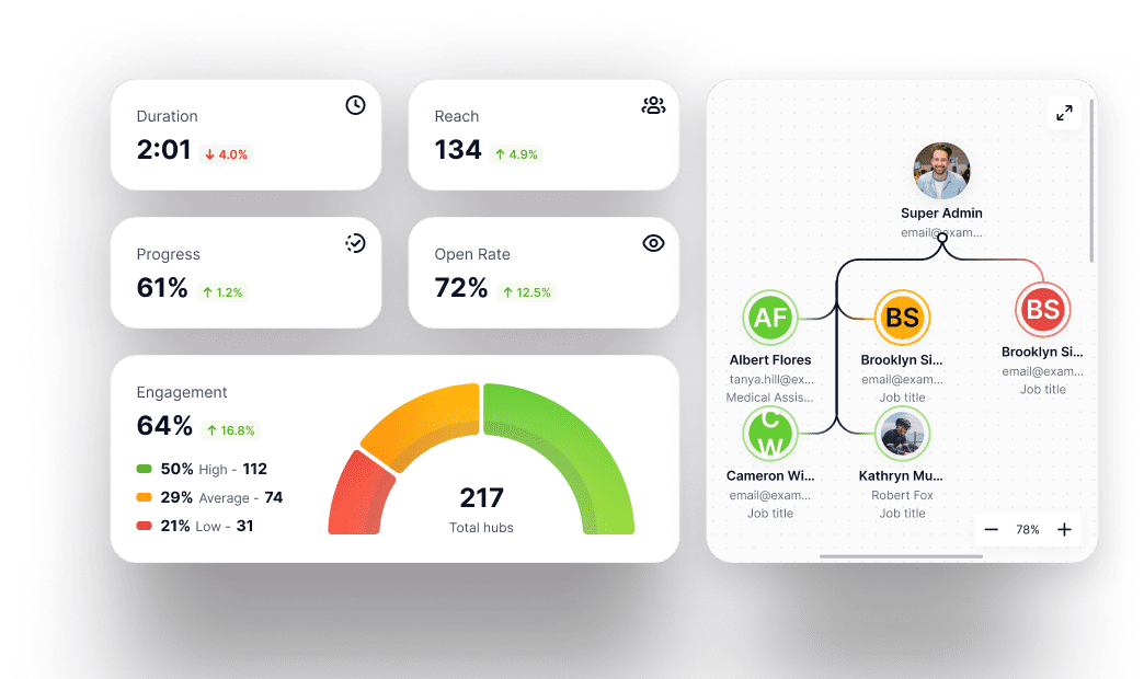 We moulded our metrics into visual stories, then used AI to tell it. Read your recommended follow-up strategies in Slack, Teams or your CRM.